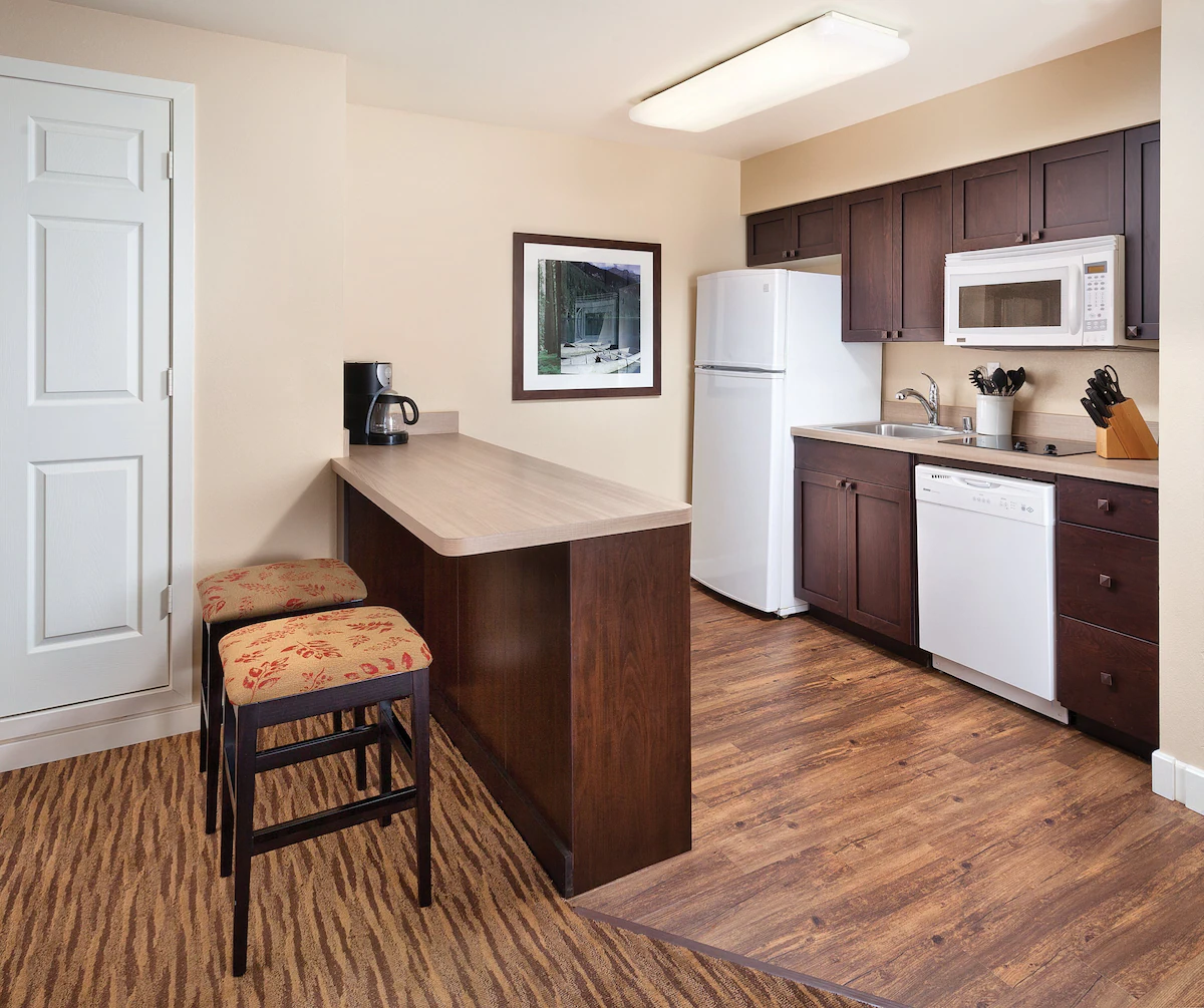 Straightforward studio suites offer kitchenettes and fireplaces, plus WiFi, cable TV and DVD players. All suites have private balconies and gas BBQs. Condo-style suites with 1 or 2 bedrooms add separate living spaces, full kitchens and washer/dryers.