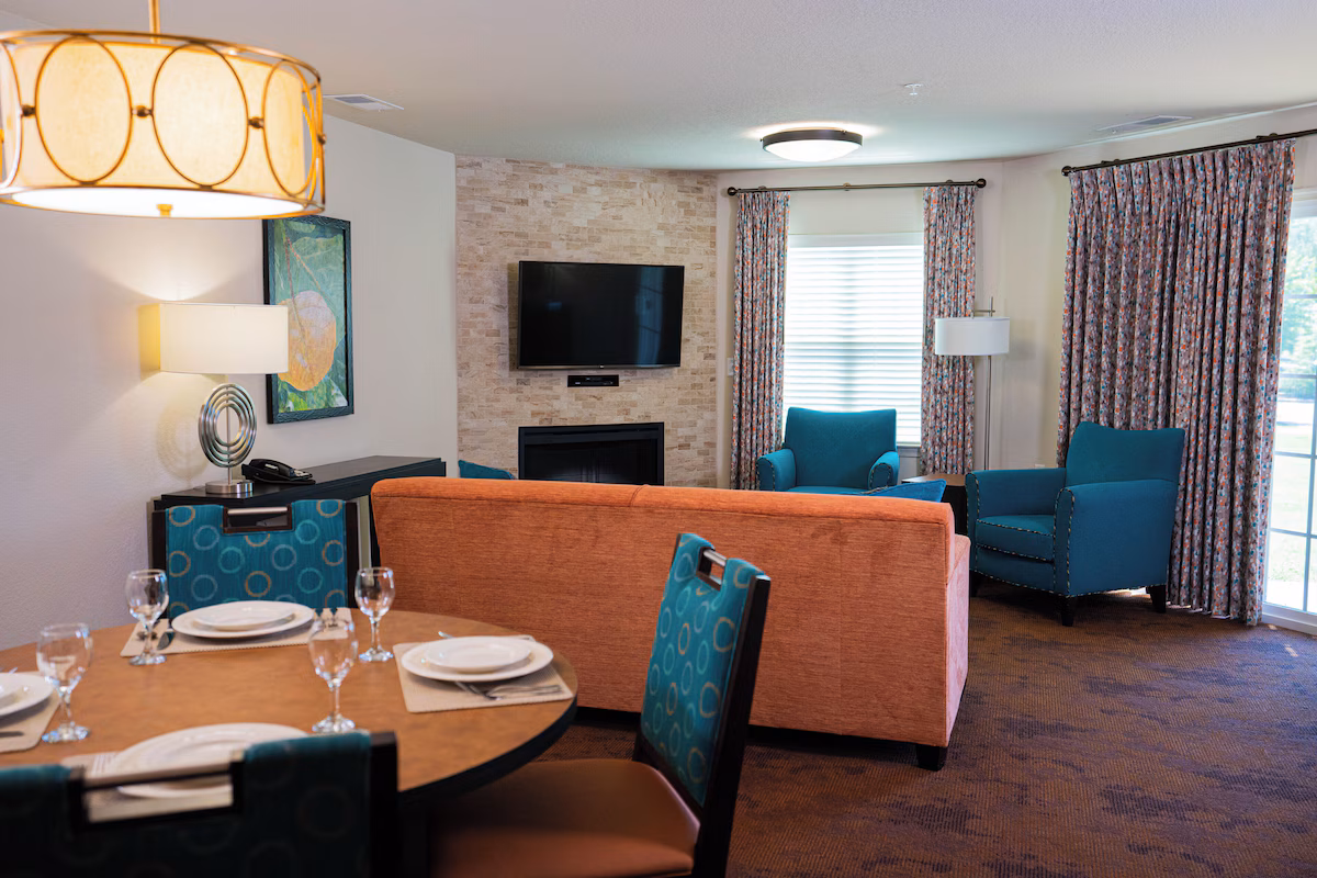 The accommodations at The Colonies at Williamsburg include features like a kitchen, spa tub and patio. The sitting area includes a sofa bed and a flat-screen cable TV.